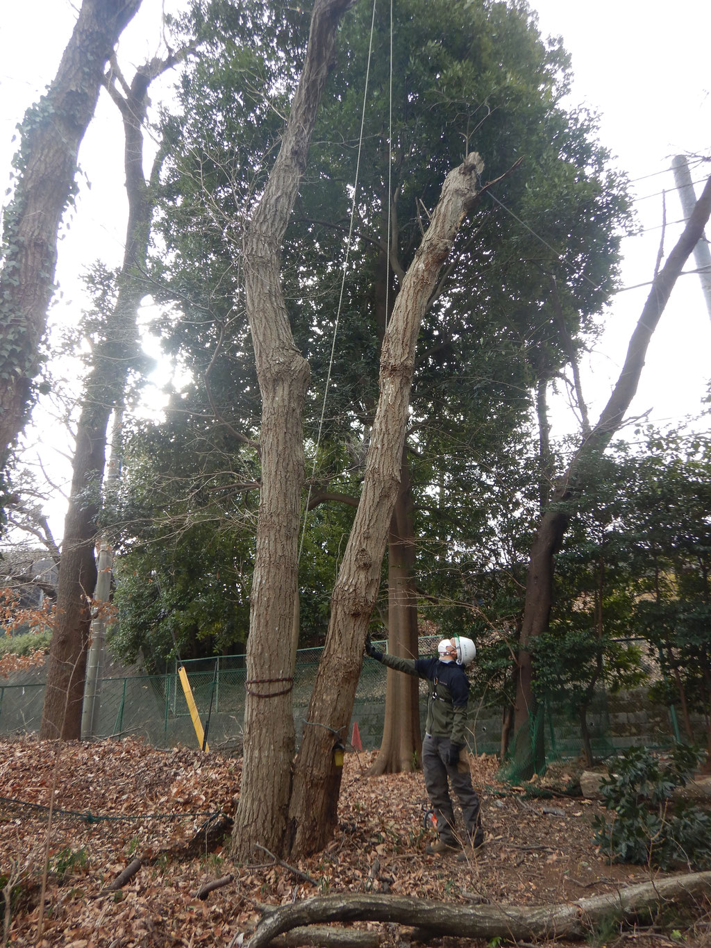 東京都町田市の山の中の危険木の伐採などを行いました。